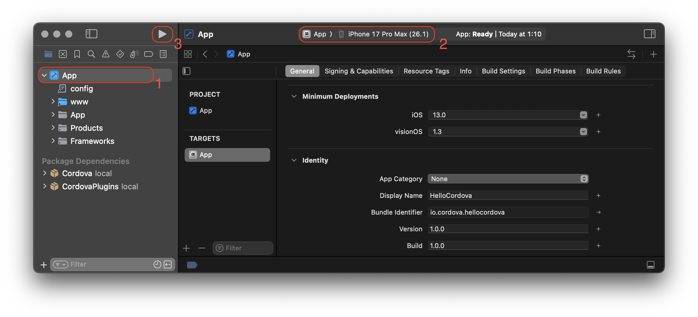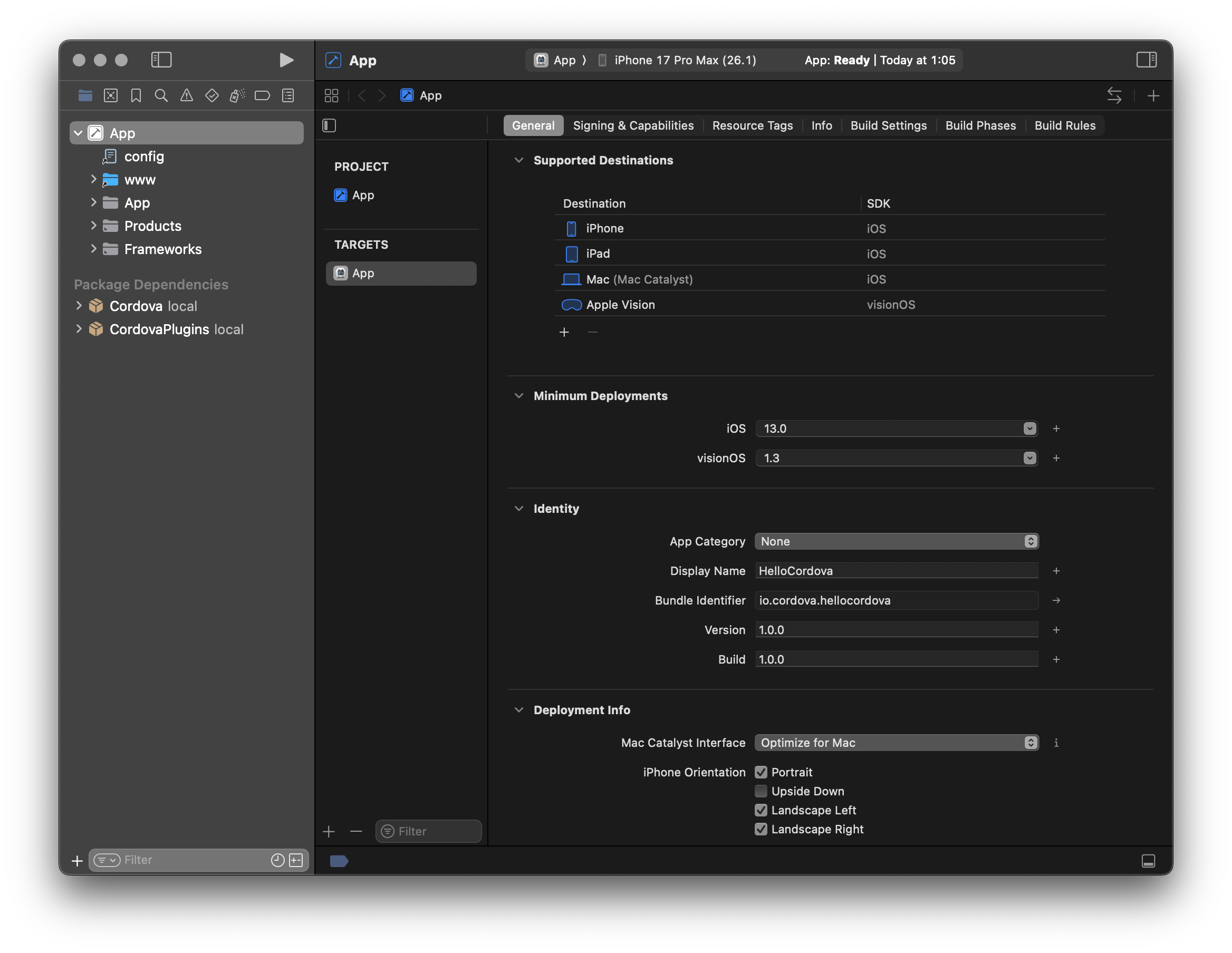 $ open -a Xcode platforms/ios/App.xcworkspace