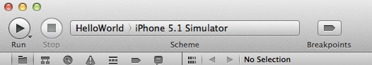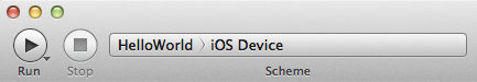 - Change the Target in the Scheme drop-down menu on the toolbar to "HelloWorld" (your project name)