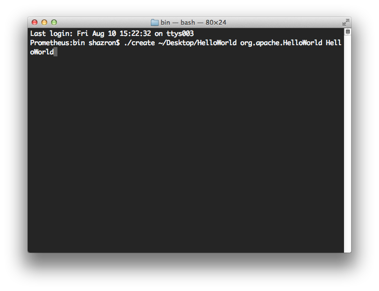 ./create <project_folder_path> <package_name> <project_name>then press "Enter"<project_folder_path> is the path to your new Cordova iOS project (it must be empty if it exists) <package_name> is the package name, following reverse-domain style convention <project_name> is the project name