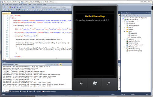 Hit the green play button beside the Windows Phone Emulator drop-down menu to start debugging or press F5.