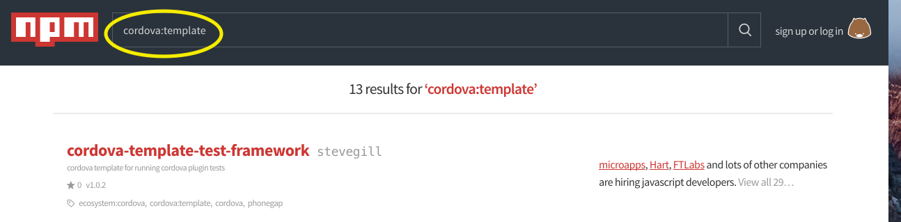 $ cordova create hello com.example.hello HelloWorld --template <npm-package-name>